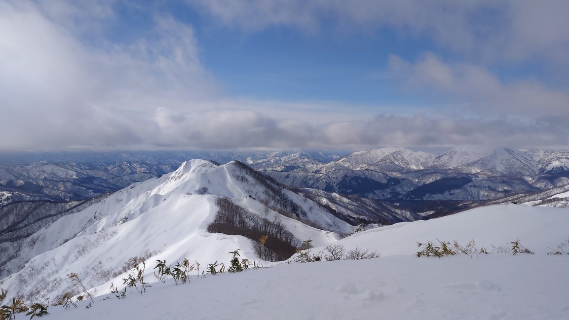 ここからは戻る感じで滑ります。パウダーの乗ったデカくて急な尾根をかっこよく滑りましたが、GoProでの撮影を失敗。何も撮れていませんでした(笑)残念。
