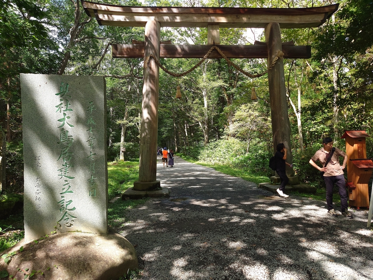 40分ほど車を走らせて駐車場に到着。駐車場から奥社までは2.6キロほどあります。